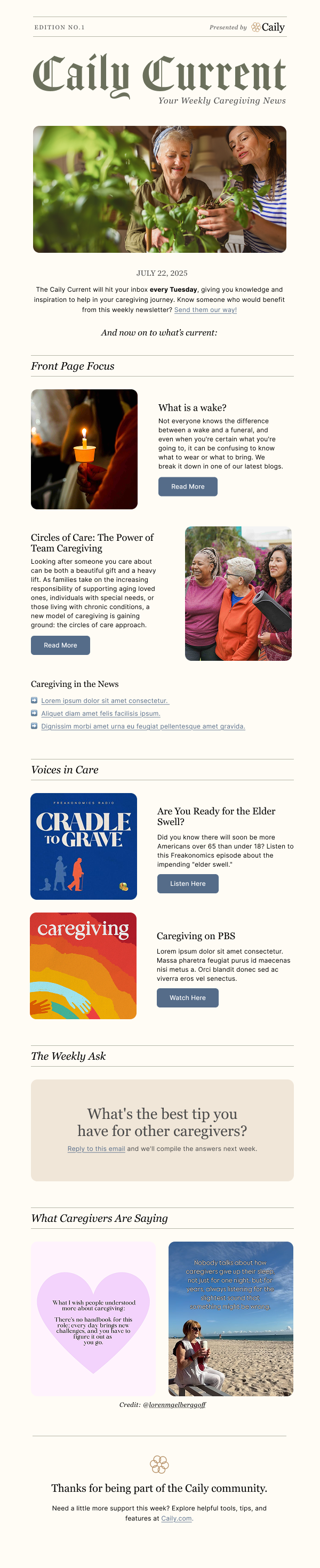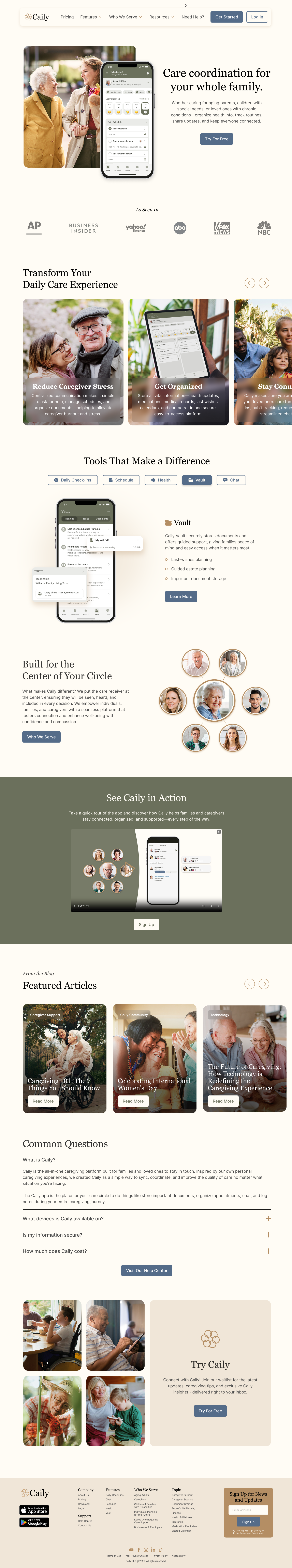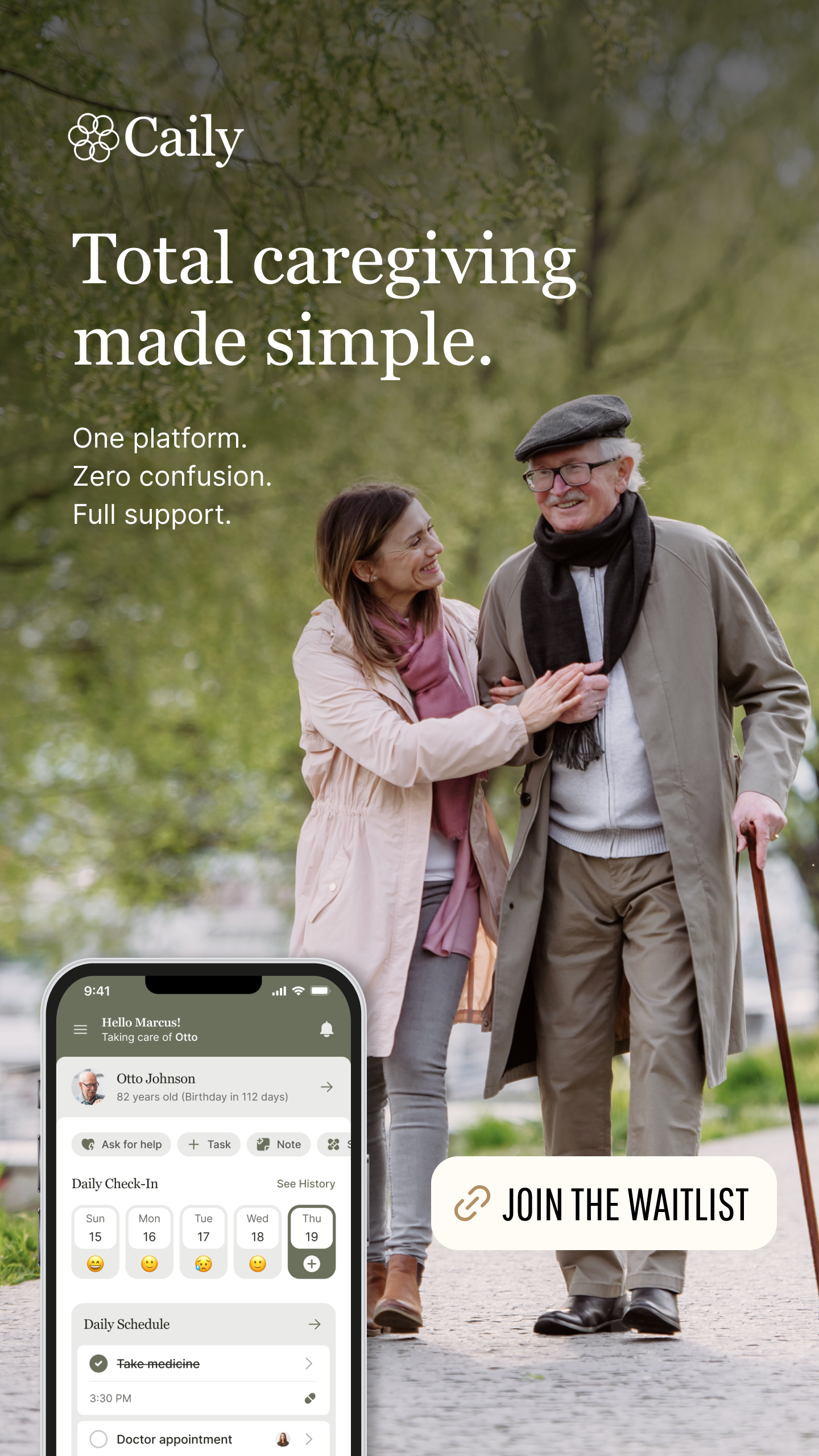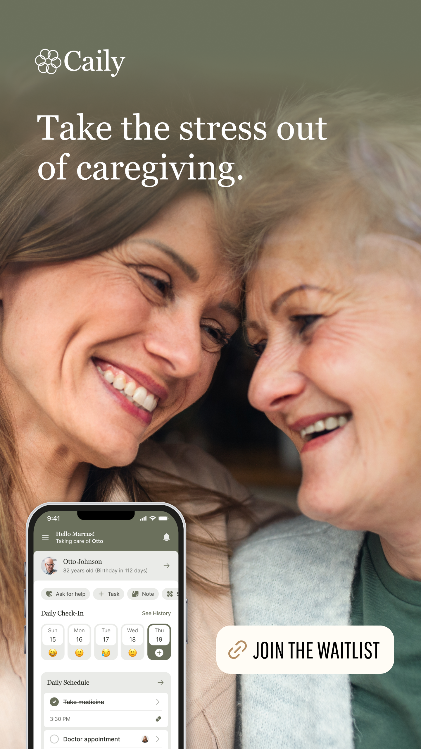 Caily is a care platform that will keep you connected to your friends and family by sharing medical information, storing important documents, building social connections, and making it simple to communicate in one place.